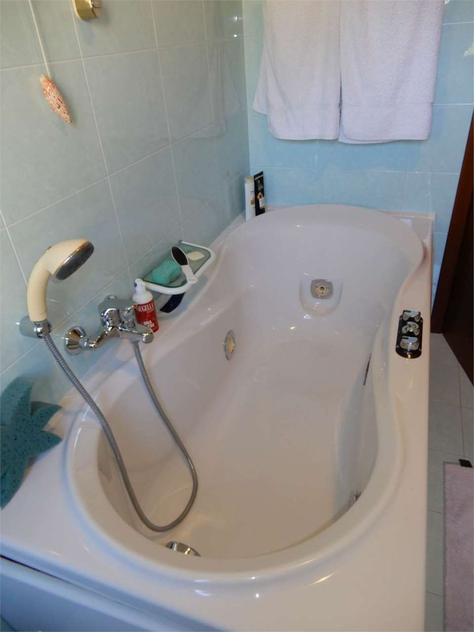 Bagno finestrato arredato con vasca idromassaggio,
