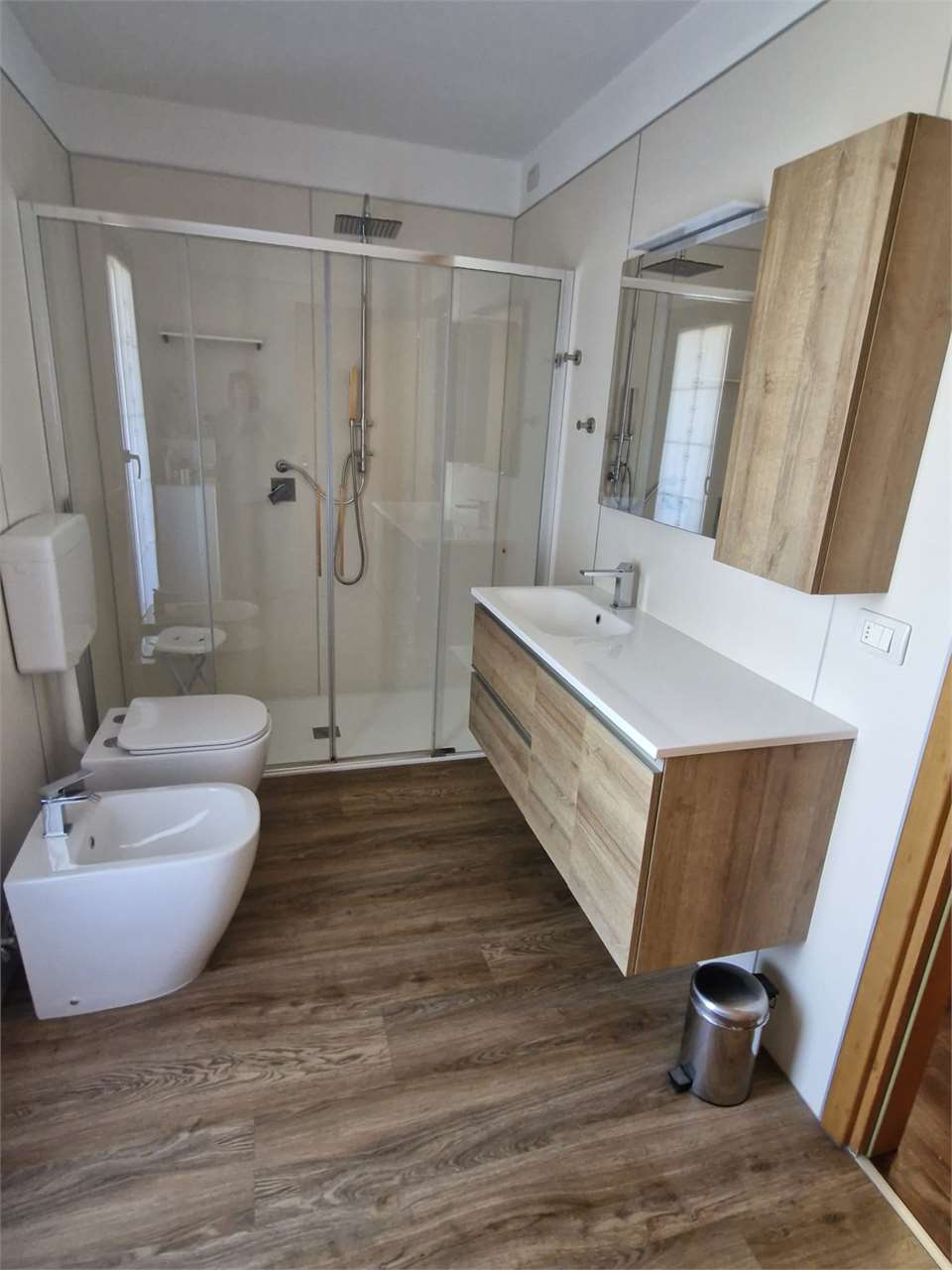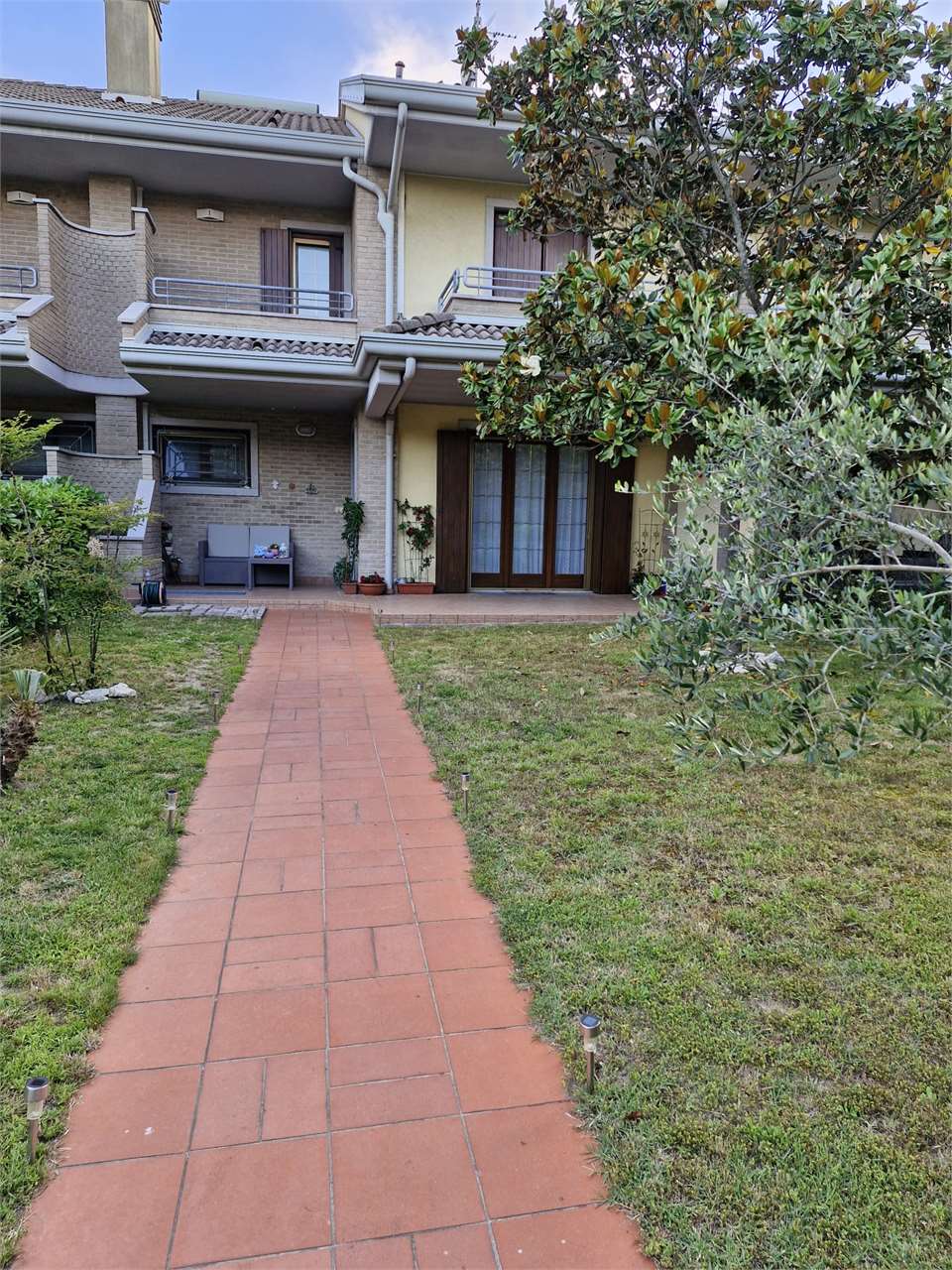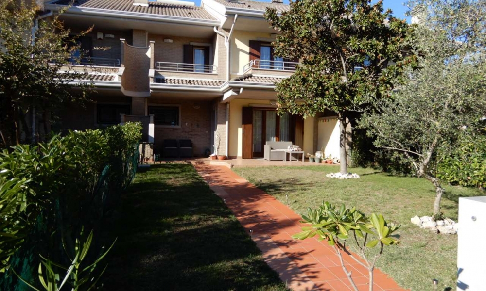 In recente complesso residenziale dei primi anni 2000, in zona tranquilla a pochi passi dal centro, dal mare e dalla laguna, spaziosa villetta con giardino esclusivo. Al piano terra si accede alla zona living, dove troviamo il soggiorno dotato di canna fumaria, un' ampia cucina con terrazza e affaccio sul verde, bagno completo con doccia. Al piano ammezzato camera/studio e al primo piano due camere matrimoniali con terrazzo e un bagno padronale. Completa la proprietà la mansarda (al grezzo), una comoda autorimessa, la cantina, la lavanderia ed una bella taverna con caminetto. Posto auto esterno di proprietà. Soluzione perfetta per famiglie numerose o per chi desidera ambienti generosi senza rinunciare al comfort e alla praticità del centro. Una soluzione abitativa ideale sia come residenza principale, sia come casa per le vacanze.