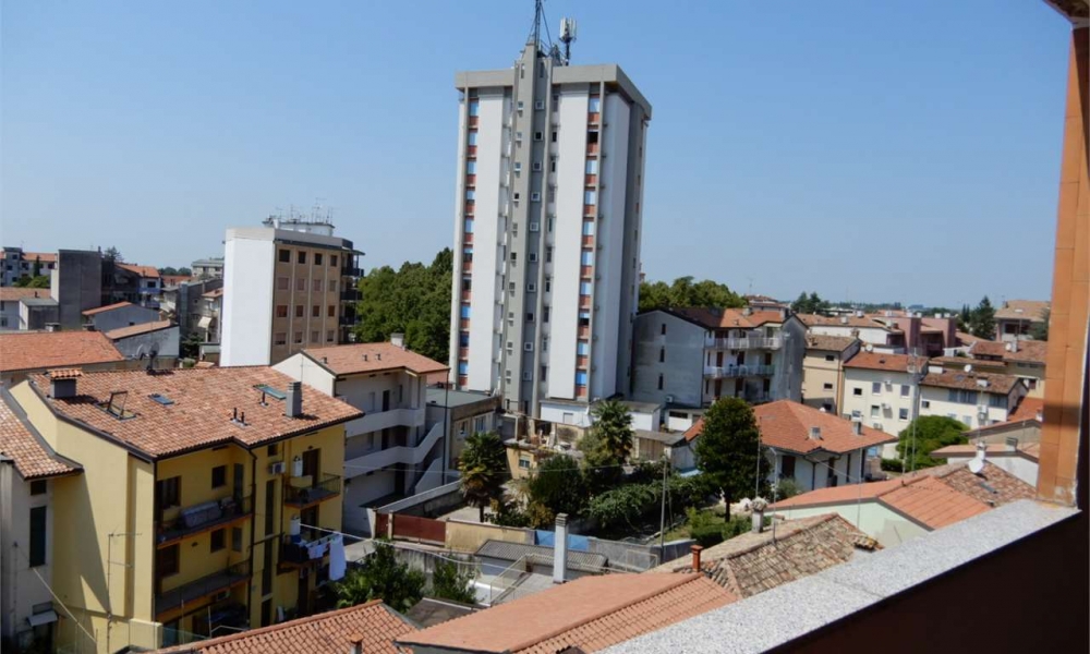 In pieno centro a Cervignano del Friuli, proponiamo in vendita appartamento al quinto piano con bella vista aperta.