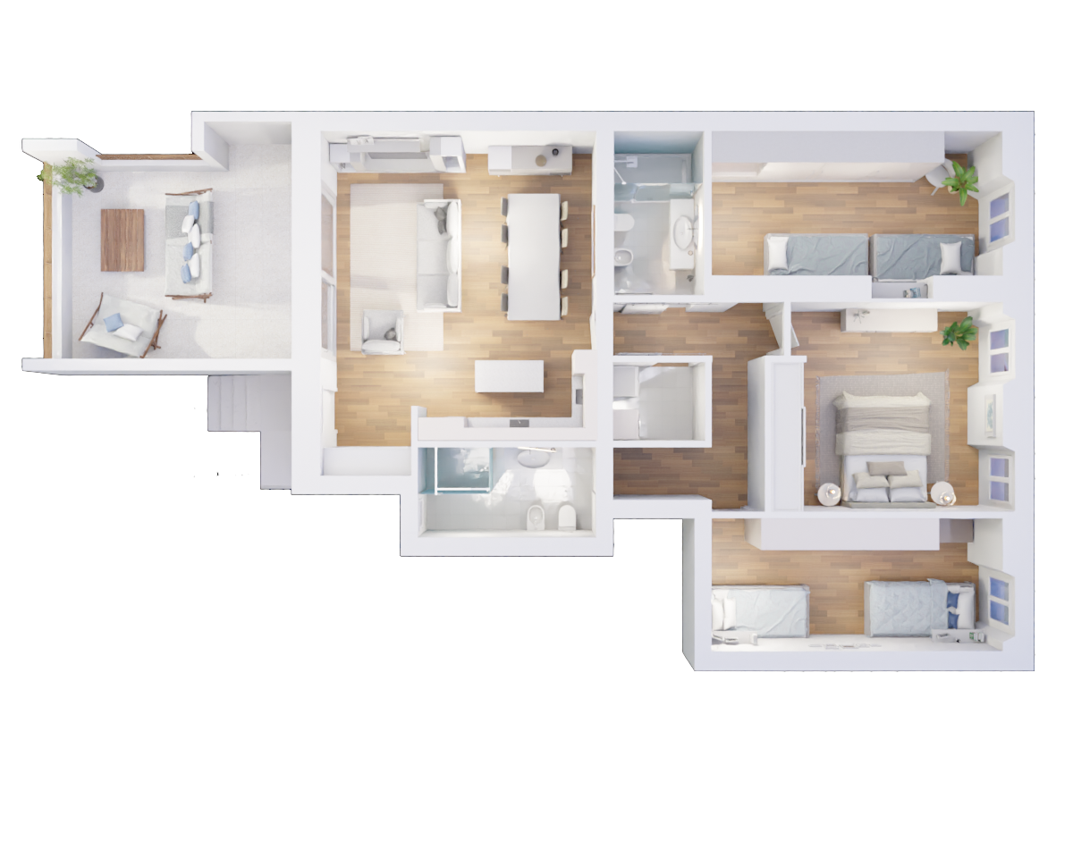 Exklusive Lösung im Herzen von Grado… Nach der Sanierung und Restaurierung der „Villa Spadiglieri“, einem der faszinierendsten historischen Gebäude aus dem späten 19. Jahrhundert, bieten wir Ihnen diese prächtigen Wohneinheiten an. Die fachgerechte Wiederherstellung und Restaurierung der originalen Architekturelemente, der Steinmauern und der freigelegten Holzdecken, kombiniert mit modernsten Materialien und Systemen, garantiert einzigartigen Wohnkomfort in den großzügigen Räumen. Große, exklusive Terrassen, ein Aufzug zu jeder Wohneinheit, Parkplätze im Innenhof (nicht im Preis inbegriffen), gemeinschaftliche Zugänge und sichere Zweiradstellplätze machen diese wundervollen Wohnräume ideal für alle, die die „Sonneninsel“ nicht nur im Sommer, sondern das ganze Jahr über genießen möchten. Das folgende Angebot umfasst eine Dreizimmerwohnung im dritten Stock mit einer Wohnfläche von 116 Quadratmetern, aufgeteilt in ein Wohnzimmer mit Küche, drei Doppelschlafzimmer, zwei Badezimmer, einen Hauswirtschaftsraum und eine große Terrasse. Die Lieferung ist für Frühjahr 2027 geplant. Für weitere Informationen zu Ausführungen und Spezifikationen wenden Sie sich bitte an die Agentur.