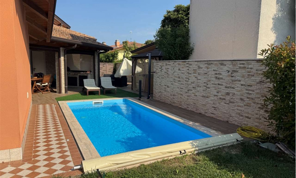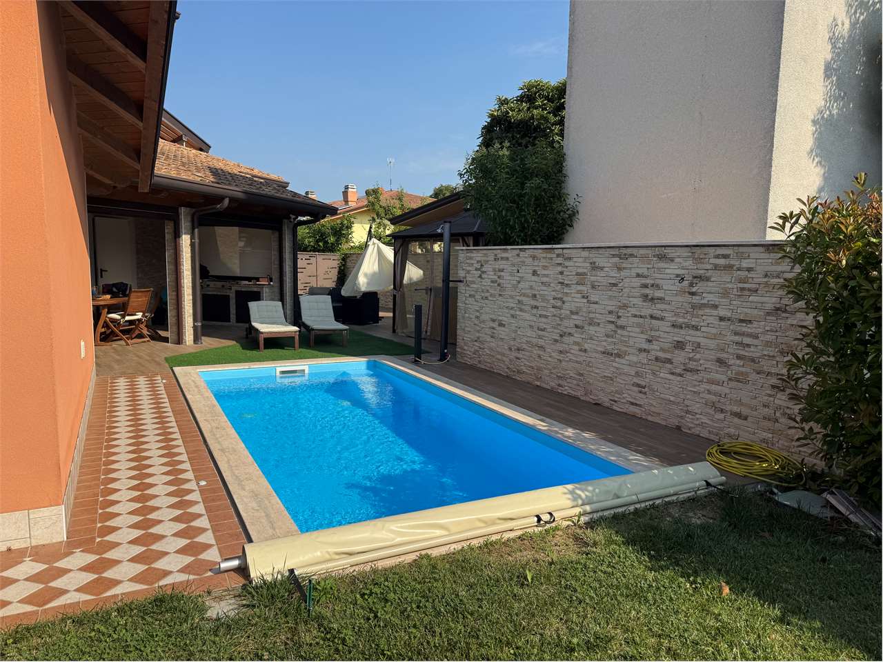 In contesto residenziale estremamente tranquillo, proponiamo splendida villa in bifamiliare dallo stile moderno, disposta su due livelli e curata in ogni dettaglio.