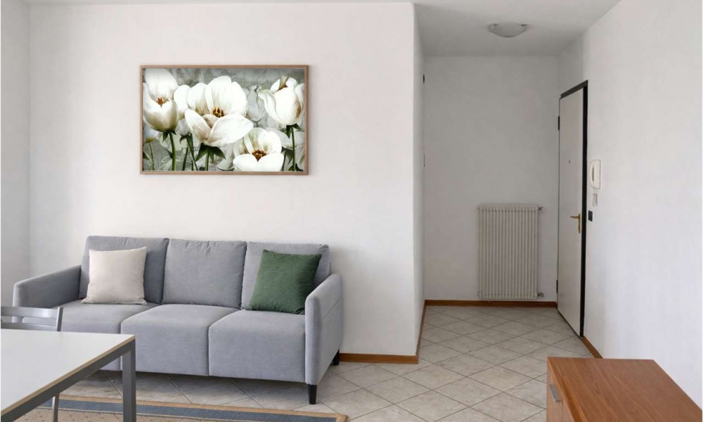 In zona residenziale appartata e tranquilla, proponiamo un bel mini appartamento in piccola palazzina; ubicato al primo piano di due, dispone di ingresso, bel soggiorno con cottura a vista, disimpegno notte, bagno finestrato con doccia e spaziosa camera da letto; Termoautonomo e climatizzato, risulta ben disposto con vista aperta su verde e arco alpino. Completano la proprietà una comoda cantina ed un utilissimo posto auto coperto. Risulterà particolarmente gradito tanto a giovani coppie al primo acquisto quanto bene per investimento (risulta al momento locato con contratto in scadenza, e quindi libero al 1 agosto 2026, eventualmente prorogabile se acquistato per investimento con una rendita di euro 5400 annui.