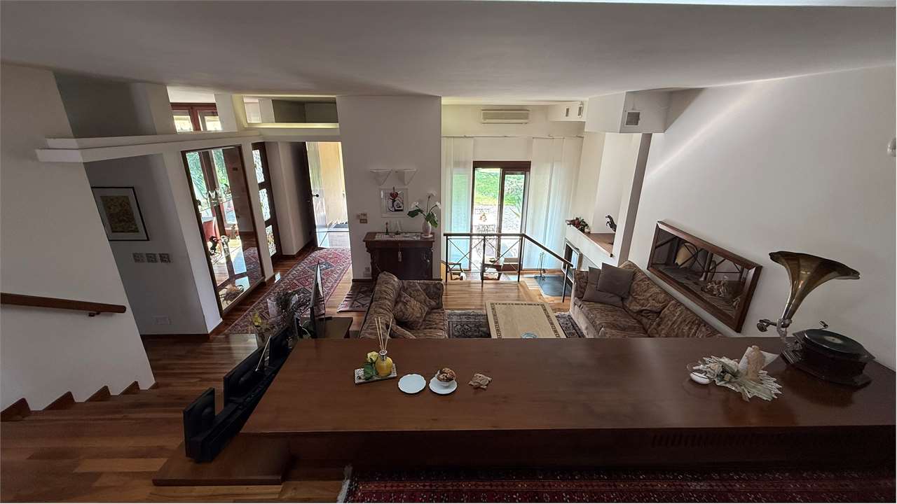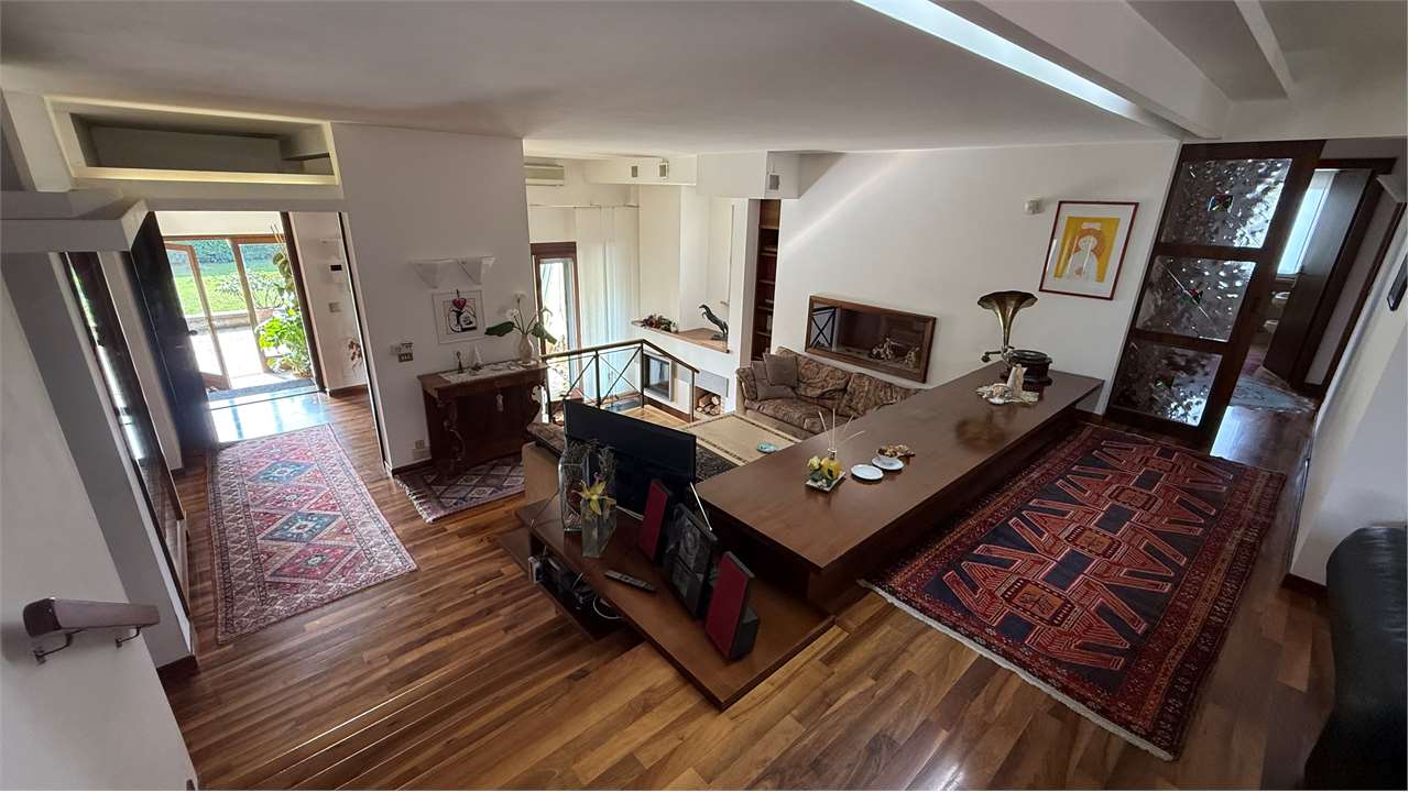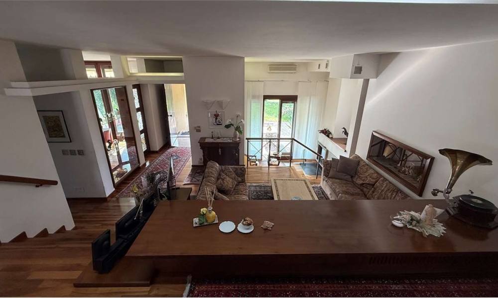 In posizione tranquilla e riservata, proponiamo in vendita affascinante villa indipendente degli anni ’80 di oltre 400 mq, caratterizzata da una raffinata architettura su piani sfalsati che dona movimento, luminosità e una distribuzione degli spazi estremamente funzionale e armoniosa.